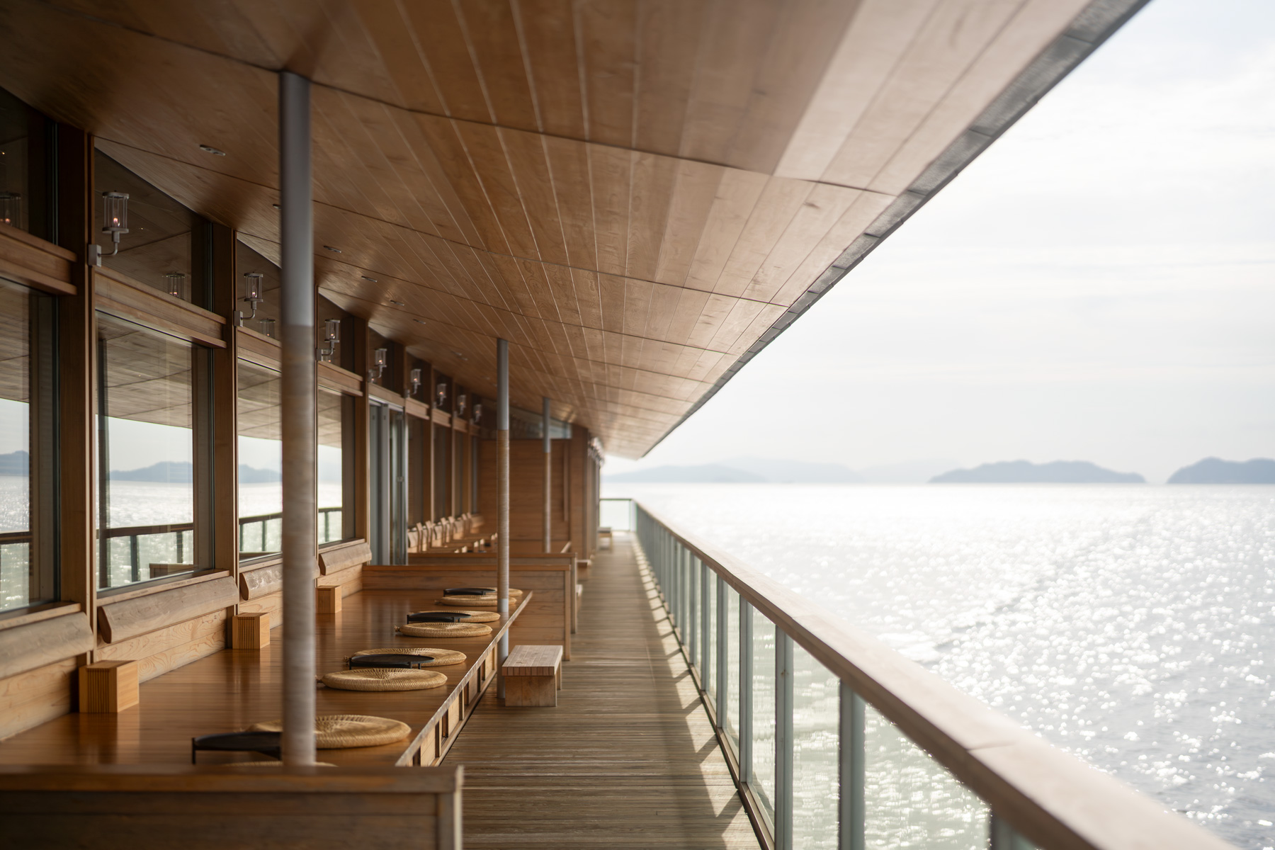 guntû departs from its home port in Onomichi, Hiroshima, and slowly sails around the Seto Inland Sea, as far west as Kaminoseki in Yamaguchi, and as far east as Shodoshima in Kagawa. A serene guntû voyage invites you to enjoy the slow pace of time, while feeling at one with the ever-changing seasons and scenery of the Seto Inland Sea.